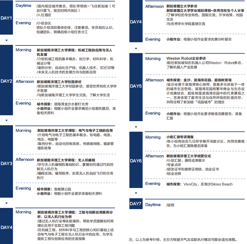 新加坡南洋理工大学实地访学冬令营【新工科与无人机创新实践】参考行程: