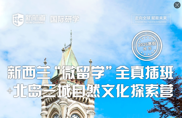 摘要:上海新航道2026年寒假研学营来了:新西兰“微留学”全真插班+北岛三城自然文化探索营,针对11-15岁在校生,招生已开启!详情咨询在线客服!