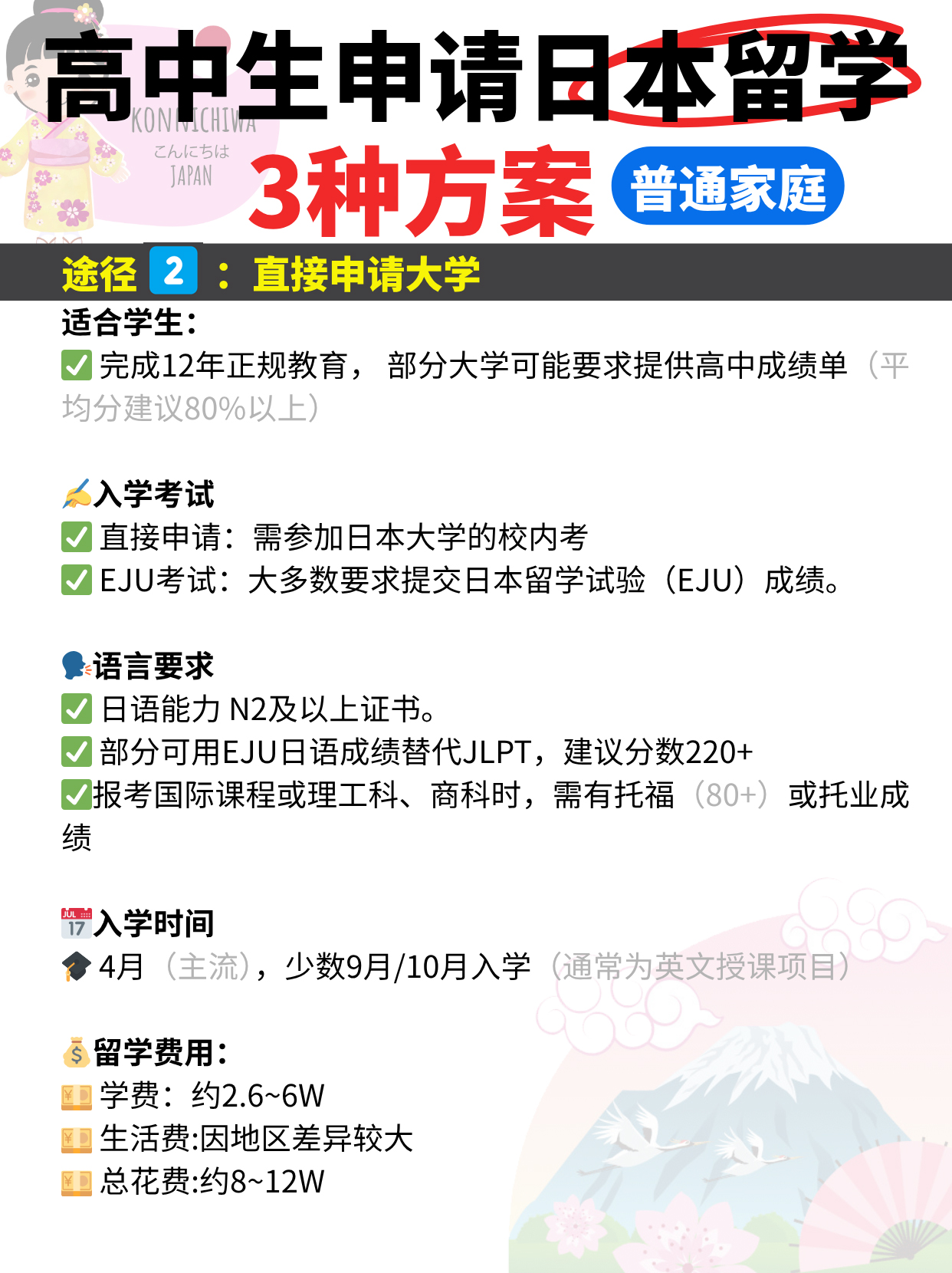 高中毕业想去日本留学,不清楚具体申请方案、申请要求及费用等,这篇笔记帮大家梳理清楚啦!