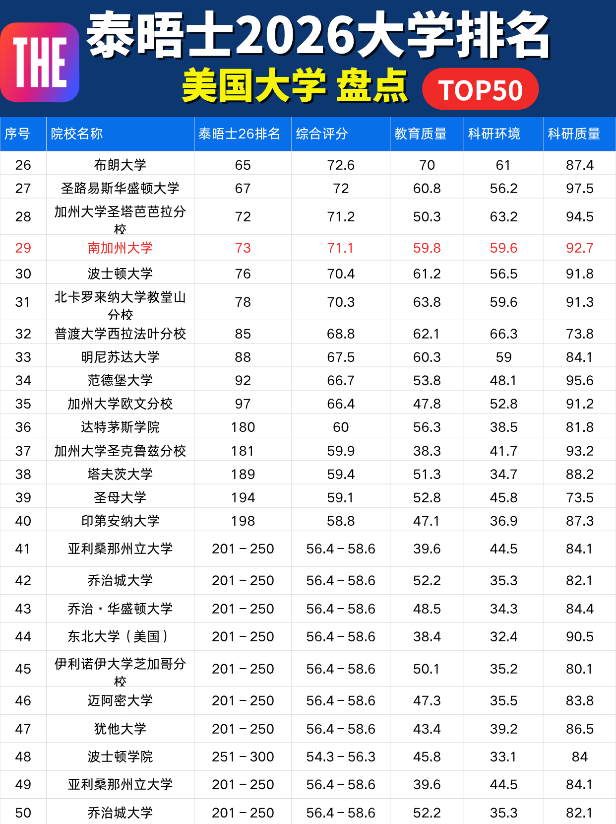 摘要:2026泰晤士大学排名出炉!美国高校表现全解析,看这篇就够了