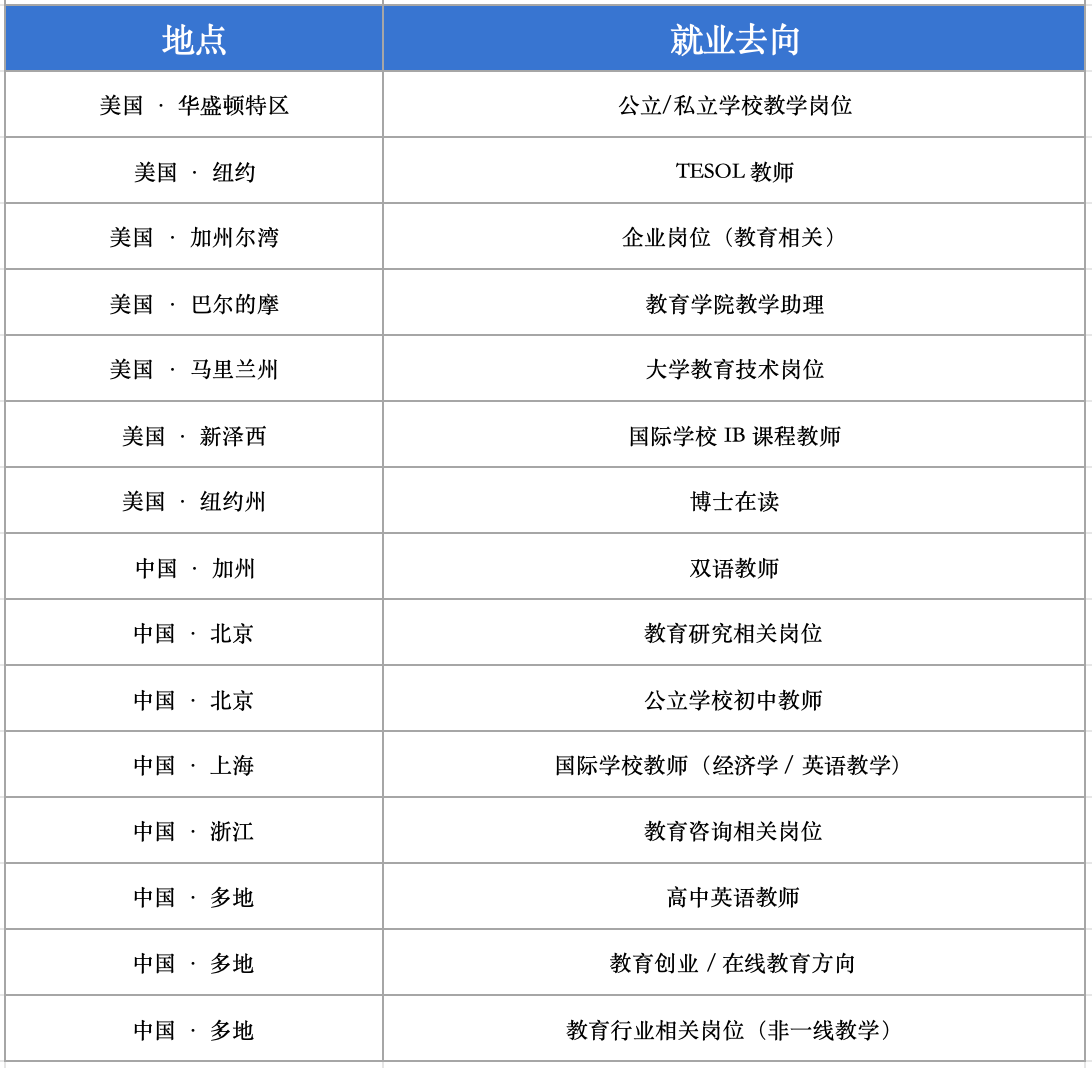以下为往届部分ITGL项目TEFL专业毕业生的就业去向,大家可以参考哦:
