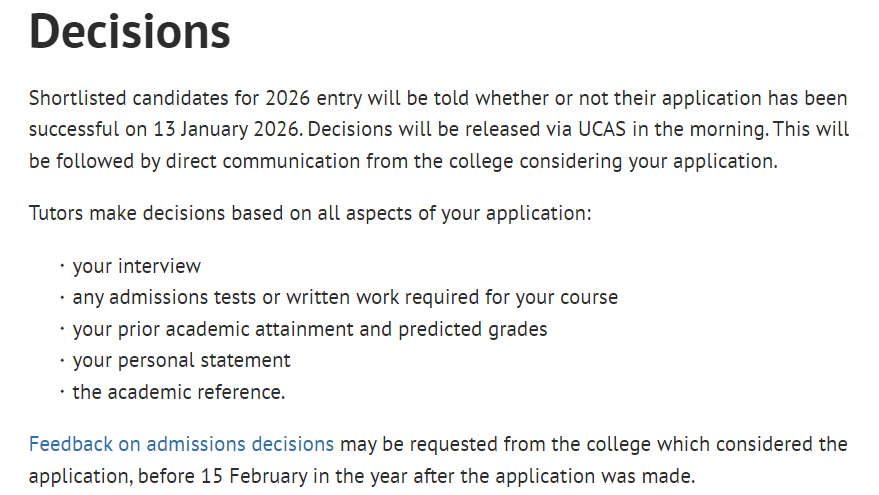 牛津大学表示,申请者可在2月15日向所申学院申请获取录取反馈。牛津另设有Open Offer机制:学生确认被录取,但具体学院待最终成绩公布后决定。