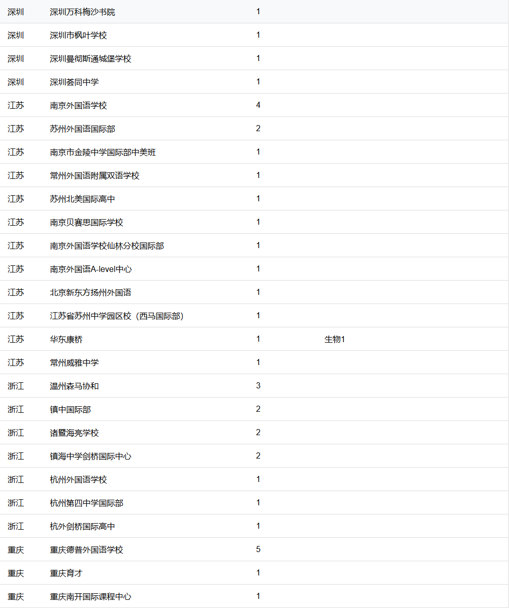 深圳国际交流书院(7枚)、重庆德普(5枚)等区域头部校,录取数仍不及上海Top3学校的零头。