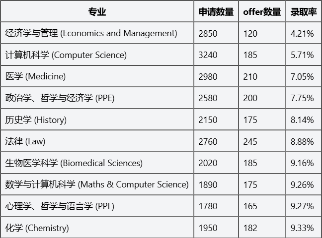 2025牛津录取率最 高的10大“捡漏”专业