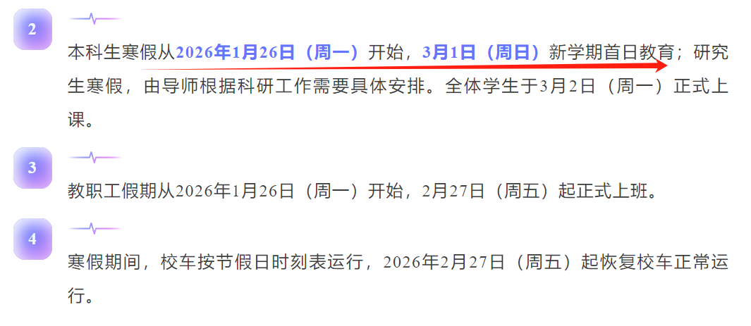 以上开学时间根据各校目前已公布的信息整理,供同学们参考。由于各校教学安排可能存在微调,建议同学们密切关注自己学校的官方通知,以最 新公布的校历为准。新学期即将开始,无论是重返熟悉的校园,还是开启崭新的学习阶段,都祝愿各位同学行程顺利,在新的学期里学业进步、收获满满!