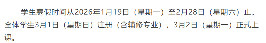 全体学生3月1日(星期日)注册(含辅修专业),3月2日(星期一)正式上课。