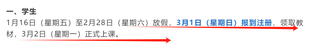 学生:3月2日、3日,学生返校报到;3月4日正式上课。