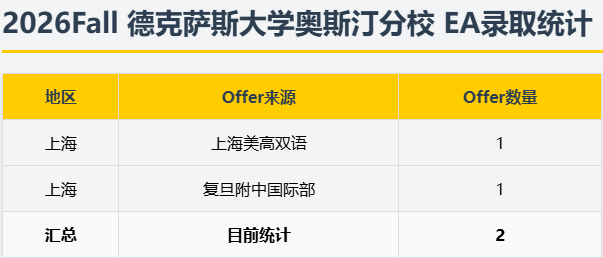 刚出炉的2026Fall德克萨斯大学奥斯汀分校(UT Austin)EA录取数据,直接给申请圈泼了盆冷水——对比去年同期的“47人全国大丰收”,今年目前仅录2人,且全部来自上海。这波“断崖式遇冷”,到底是暂时波动,还是美本早申的新趋势?