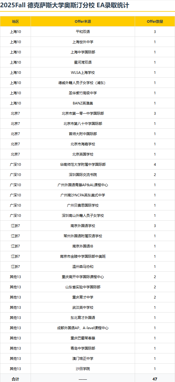 今年上海的2枚Offer,来自美高双语(首 次上榜)和复旦附中国际部(去年未录),反而往年的“录取大户”(平和、世外)暂未出结果。这说明UT Austin在刻意避开“集中投喂头部校”,更倾向给不同学校的学生机会。