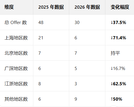 2025年“其他地区”仅6枚Offer,2026年涨到9枚: