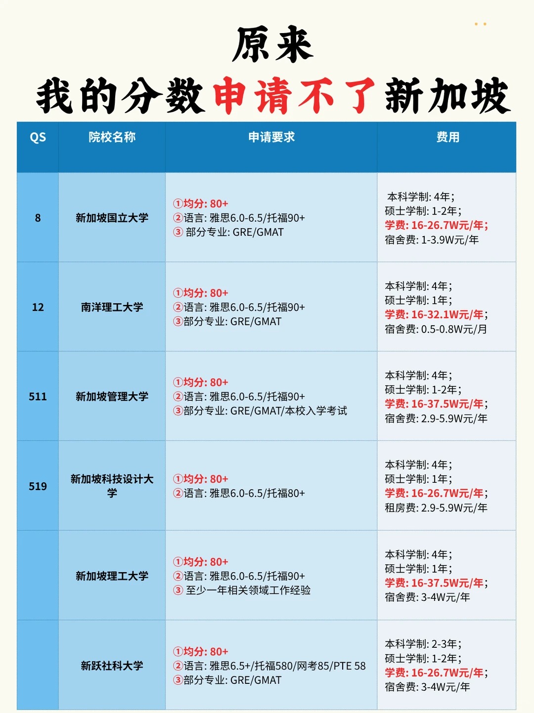 新加坡公立大学要求: