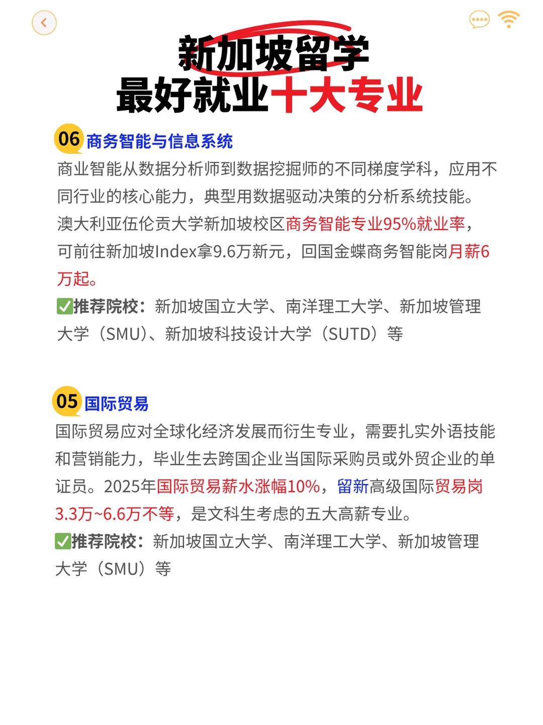 摘要:对于众多将目光投向新加坡的留学生而言,选择一个未来前景广阔、就业竞争力强的专业,无疑是实现留学价值的关键一步。从引领全球科技浪潮的人工智能,到作为数字经济基石的计算机科学,再到持续繁荣且急速转型的金融服务领域,新加坡不仅提供了世界顶 尖的教育资源,更与产业前沿紧密对接,为毕业生铺就了通往高价值职业的黄金赛道。本文将为您深度解析新加坡最 具就业优势的十大专业,帮助您在规划留学之路时,做出更明智、更具前瞻性的选择。