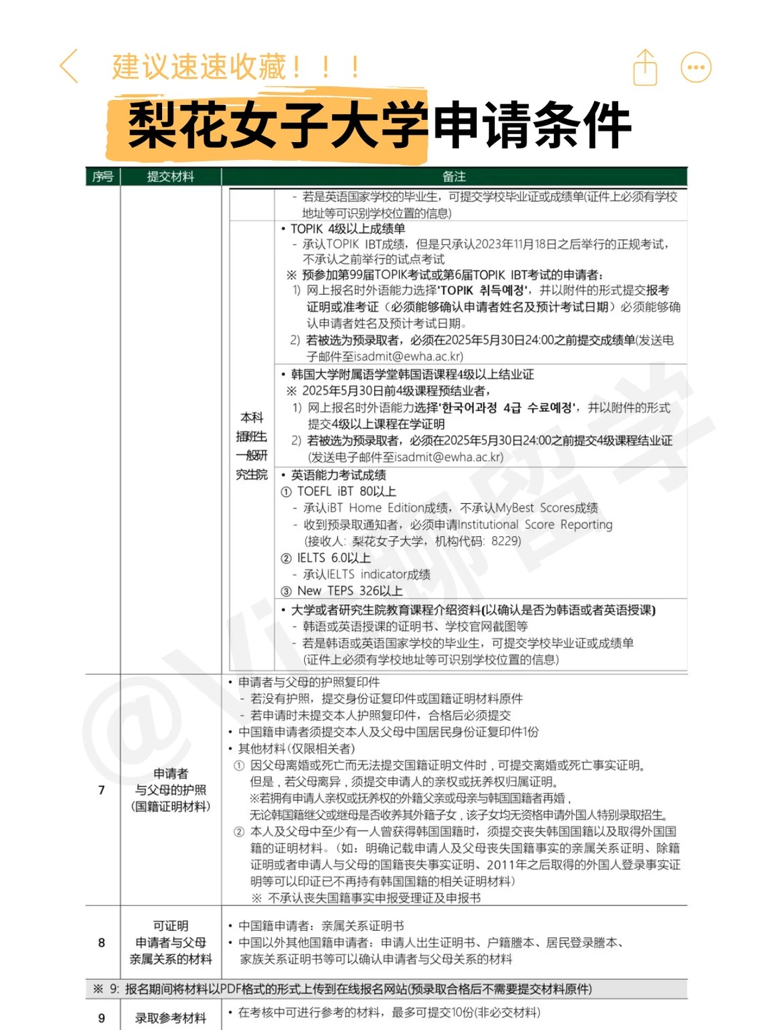 除了常规成绩单、毕业证,梨大超看重亲属关系证明!