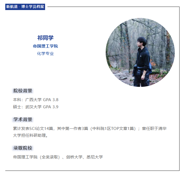 在博士申请这一顶 尖学术竞争中,扎实的科研积淀、精 准的院校匹配与科学的策略规划缺一不可。从武汉大学硕士到斩获剑桥、帝国理工(IC)、悉尼大学多封顶 尖录取,祁同学的申请历程正是这一理念的成功实践。面对“剑桥光环”,他理性选择了与自身研究方向最契合的IC全奖,这不仅是对其“基于AI的癌症早期诊断”研究的最 佳平台,更是一份对科研潜力的重量级认可。本文将详细复盘他的“逆 袭”之路,剖析其制胜关键,为心怀科研梦想的学子提供一份可借鉴的申博蓝图。