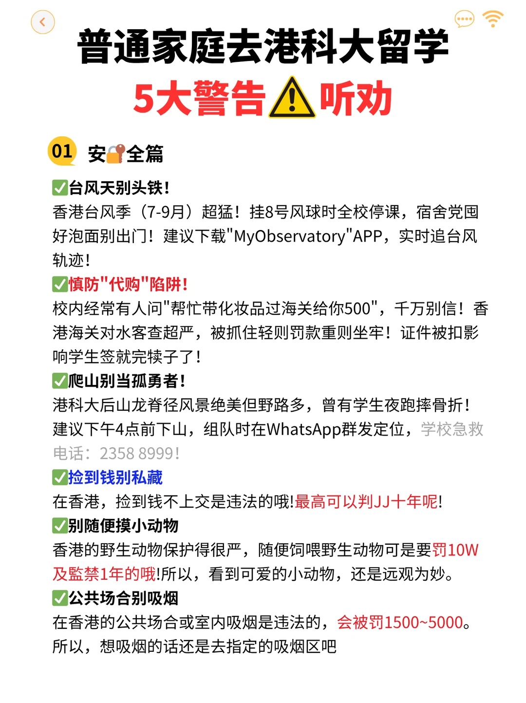 港科大后山龙脊径风景绝美但野路多,曾有学生夜跑摔骨折!建议下午4点前下山,组队时在WhatsApp群发定位,学校急救电话:23588999!