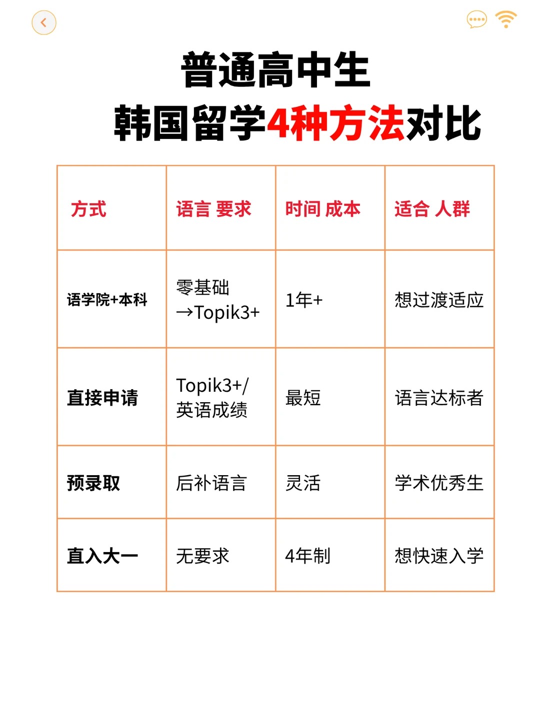 总体而言,韩国留学的灵活性为不同背景的普高生提供了多样化的升学通道。无论你是选择稳步推进的语言学习,还是凭借优 秀背景争取预录取,关键是根据自身条件制定清晰的规划。留学不仅是学业的跨越,更是视野与能力的锤炼。希望这份指南能助你扫清迷雾,自信迈出走向韩国的第 一步,开启一段充实而精彩的成长旅程!