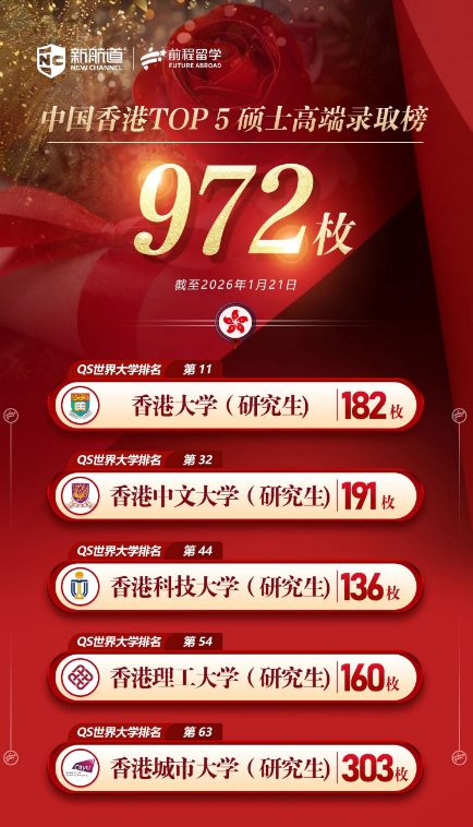 截至目前,新航道学子已斩获972枚香港前五硕士录取!