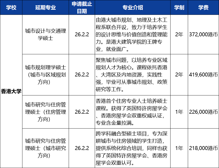 港大此次延期的4个项目均属于城市规划与设计领域,适合对城市发展、住房管理、交通规划等内容感兴趣的同学。要知道在2025QS世界大学学科排名中,港大建筑与建造环境位列全港第1,世界第13位!