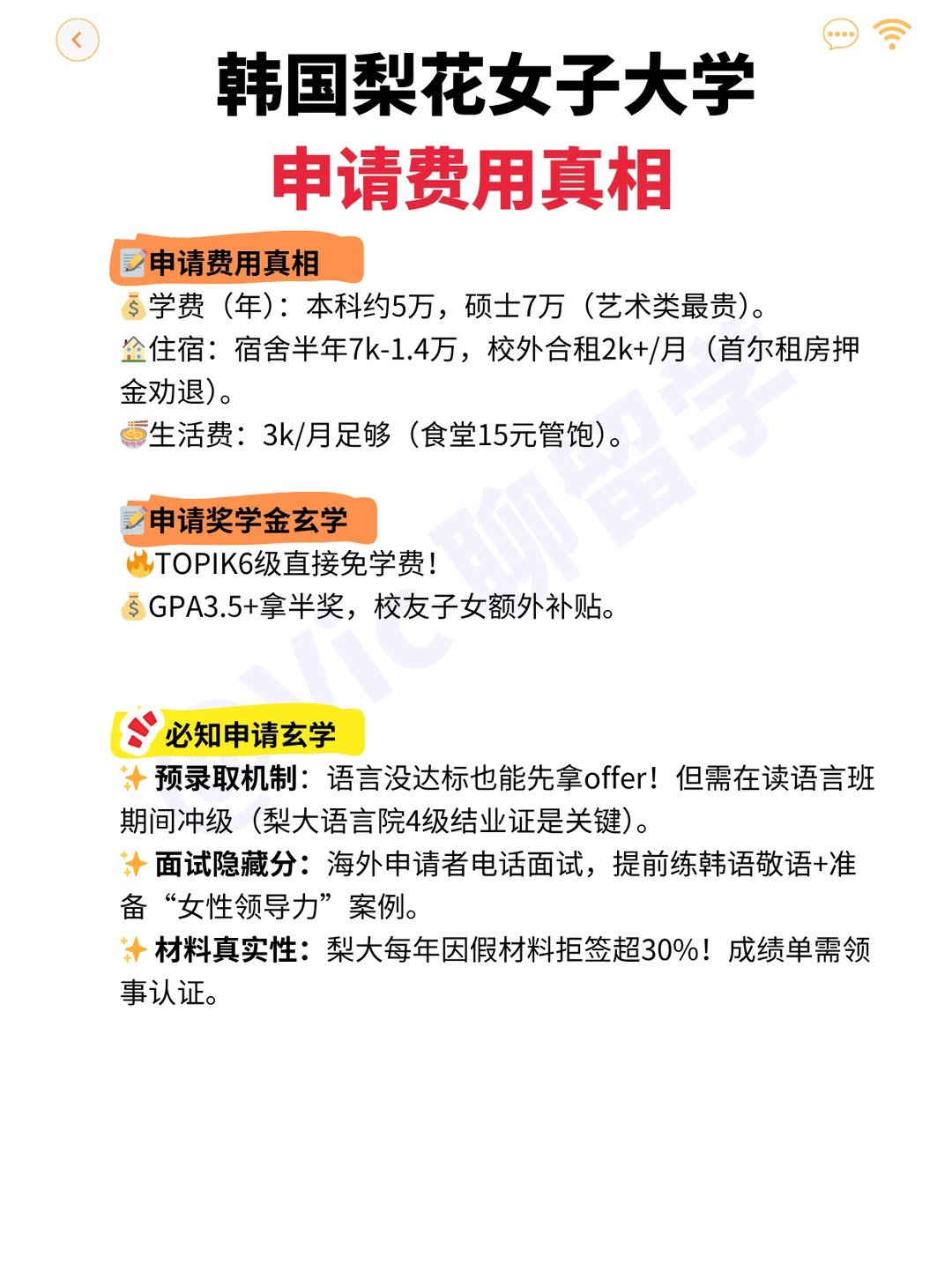 韩国梨花女子大学申请费用真相!奖学金薅羊毛攻略