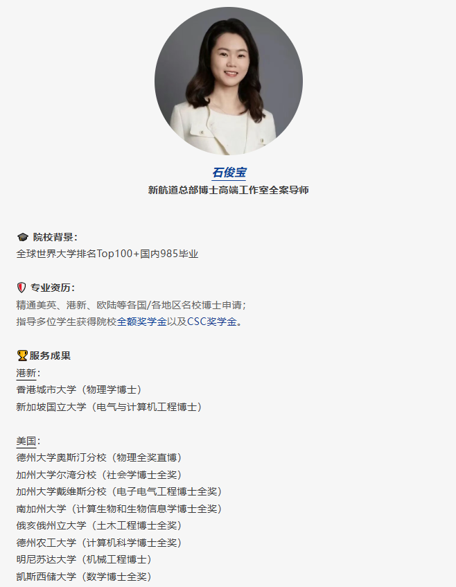 如果你也想像他一样斩获梦校博士offer,不妨让新航道前程留学拥有10年以上申请经验的专业申博老师来帮你。