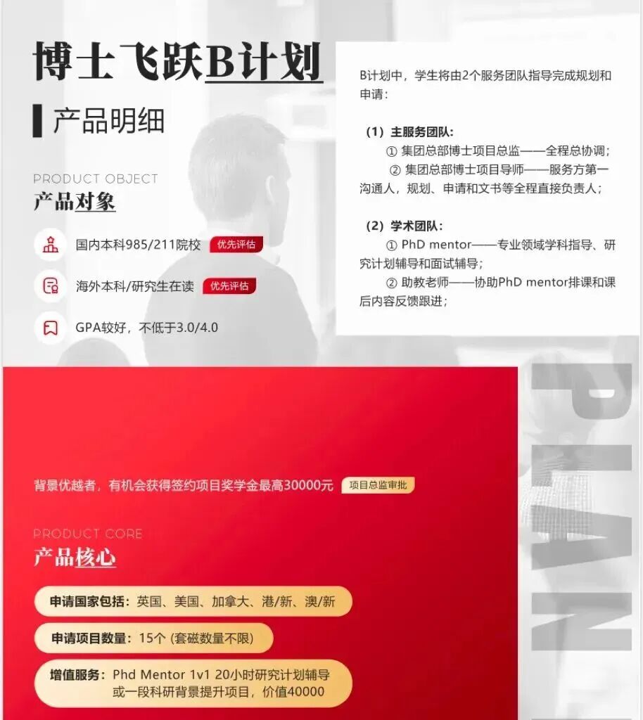 增值服务:Phd Mentor 1v1 20小时研究计划辅导或一段科研背景提升项目,价值40000元