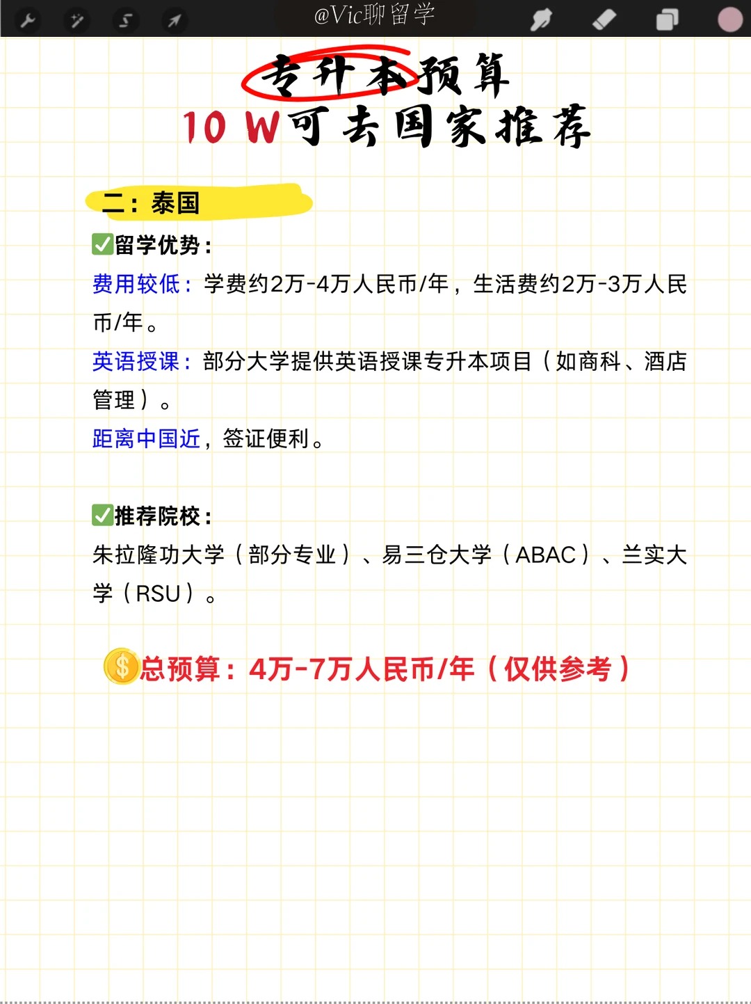 精 准预算:10万预算建议选择马来西亚、泰国或菲律宾,避免欧美高生活费国家。
