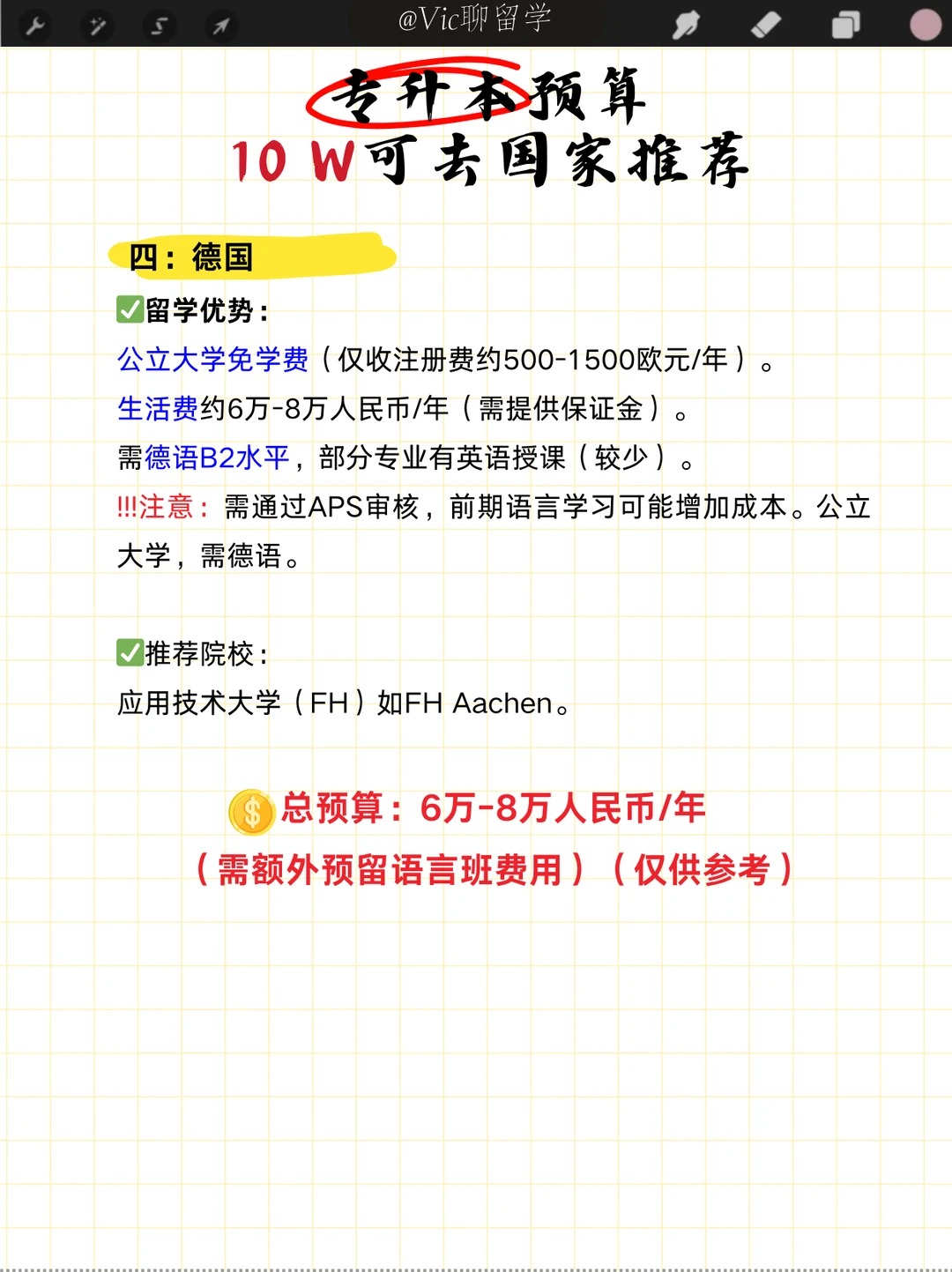 总预算:6万-8万人民币/年(需额外预留语言班费用)。