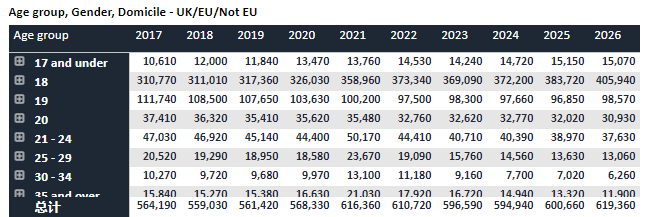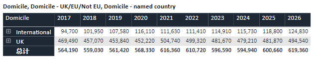 非欧盟:非欧盟地区的国际申请者人数为104,230人,较上一届(98,850)增长5380人,同比增幅约5.44%。