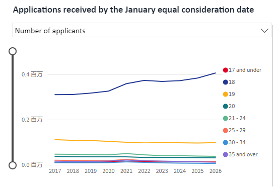 全英国各年龄层共有494,540人申请了本科课程,较上个申请季同期数据(481,870人),增加12,670人,增幅大约2.6%。