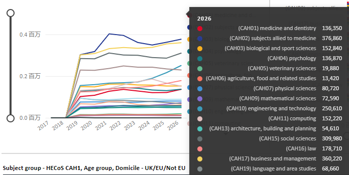 根据UCAS的统计,2025-2026申请季较为热门的专业方向有: