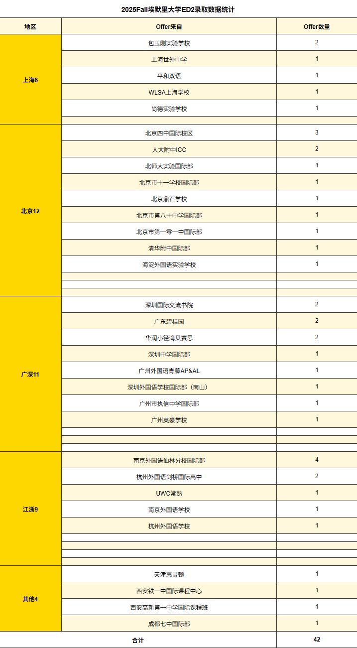 全国总量:2025Fall42枚,2026Fall截至发稿29枚,录取总量有所下降,侧面反映埃默里ED2录取门槛略有提升;