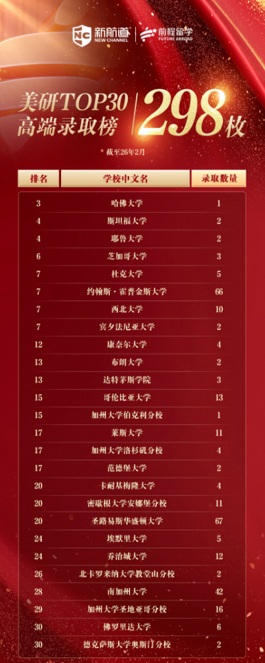 摘要:三月,美研申请迎来了最揪心的季节。有人在offer中欢欣,有人在拒信里迷茫,还有刚出考研成绩的同学急切追问“现在转留学还来得及吗”。作为一名深耕申请规划多年的老师,我想说:焦虑是常态,但比焦虑更重要的,是看清美研录取的底层逻辑——它究竟在选什么样的人?今天,我们基于新航道26申请季的真实录取数据,拆解那些决定成败的关键。