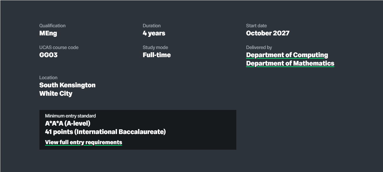 与此同时,IC数学与计算机类专业的笔试要求也更加明确。MEng Mathematics and Computer Science、BEng Mathematics and Computer Science、BSc Economics, Finance and Data Science(EFDS)等专业均要求参加TMUA笔试。