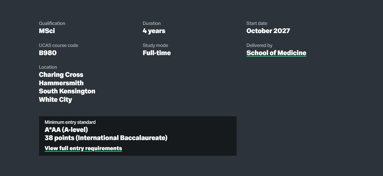 还有一个变动堪称“活久见”:IC医学本科专业的A-Level门槛上调了。