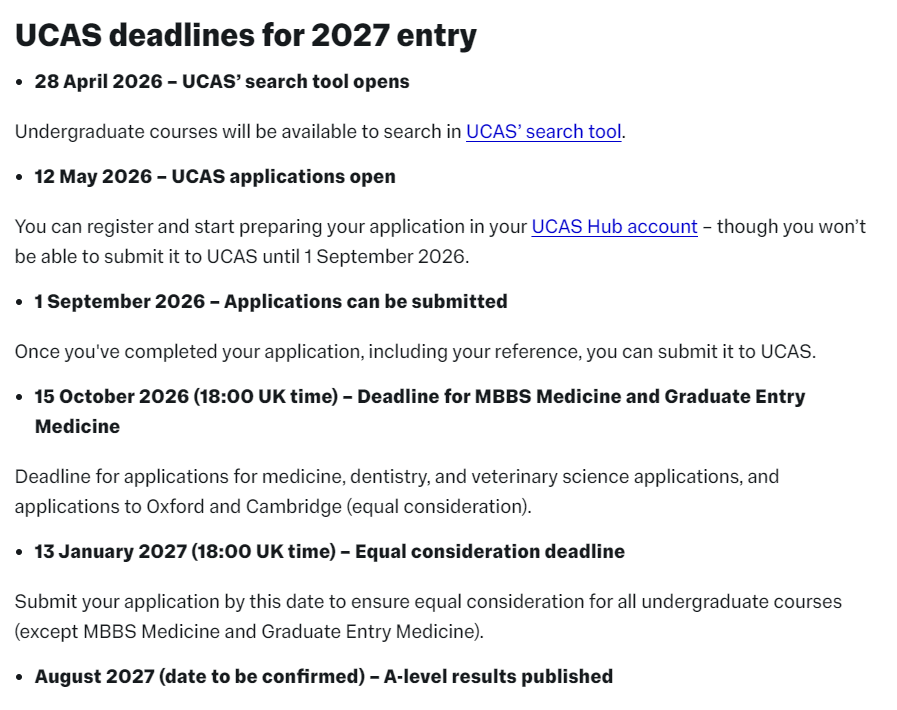 2026.10.15 18:00(英国时间):医学专业申请截止