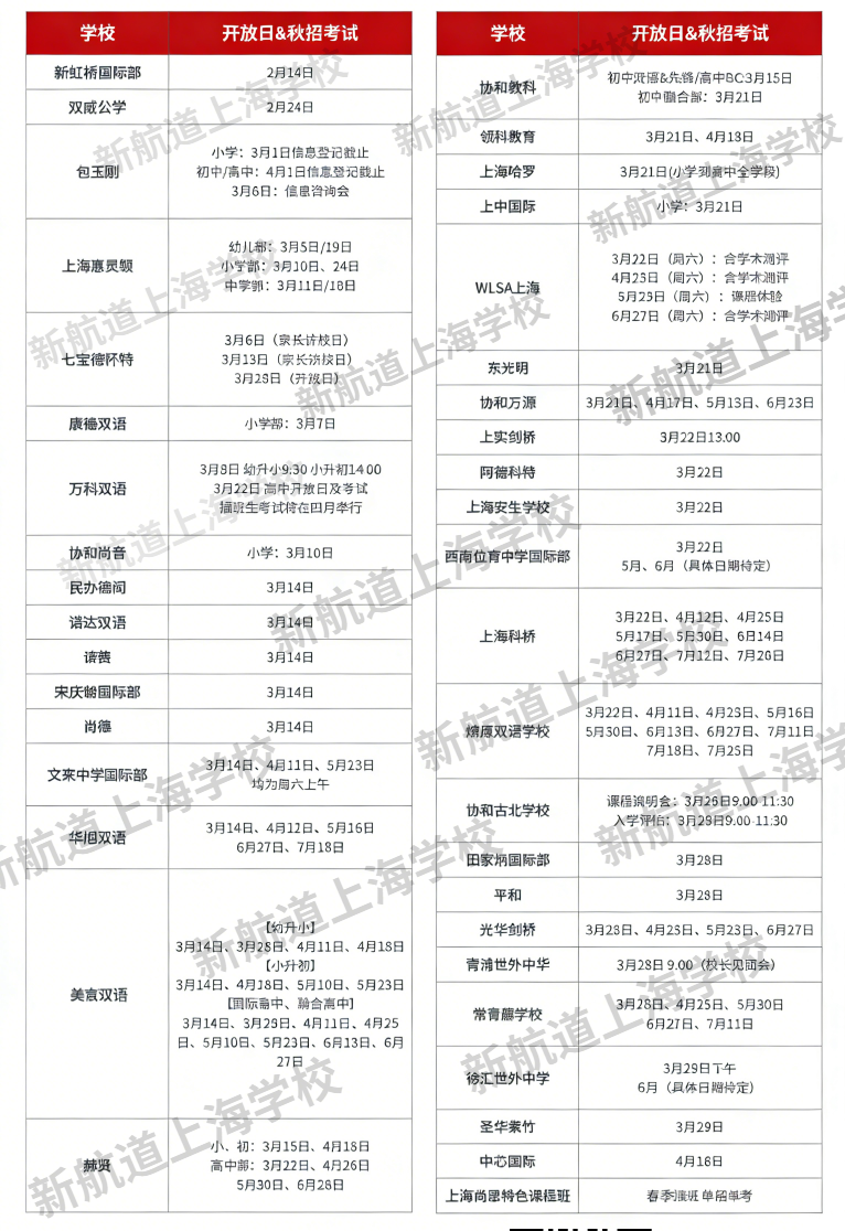 三月伊始,沪上国际学校秋招战役已全面打响!光剑、平和、七德、WLSA等热门校纷纷官宣2026年入学安排,考试高峰即将在本月下旬集中来袭。面对3月22-23日、28-29日两大周末密集“撞车”的考试档期,盲目应考只会错失良机。唯有精 准掌握各校考试风格与录取节奏,提前规划备考优先级,才能在时间冲突中从容应对,步步为营地锁定心仪offer。
