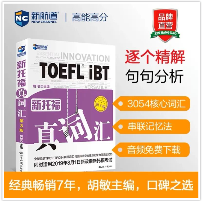 新航道胡敏教授主编,3054个核心词汇,词根+联想高效助记,托福词汇一本通!