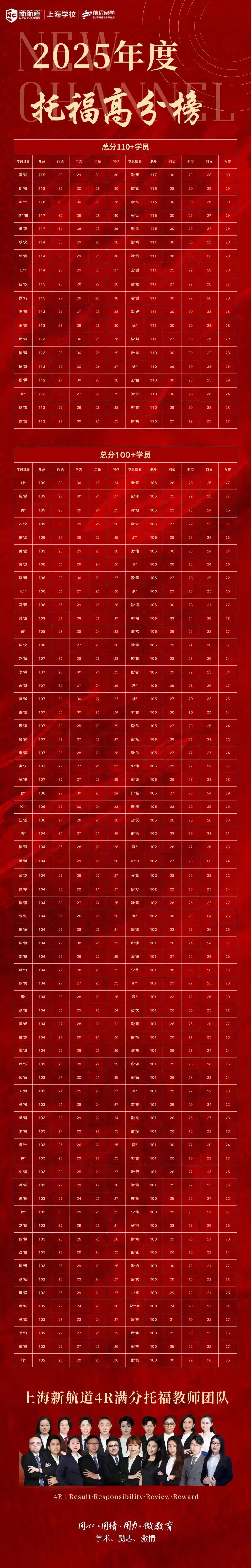 新航道上海学校2025年托福高分榜