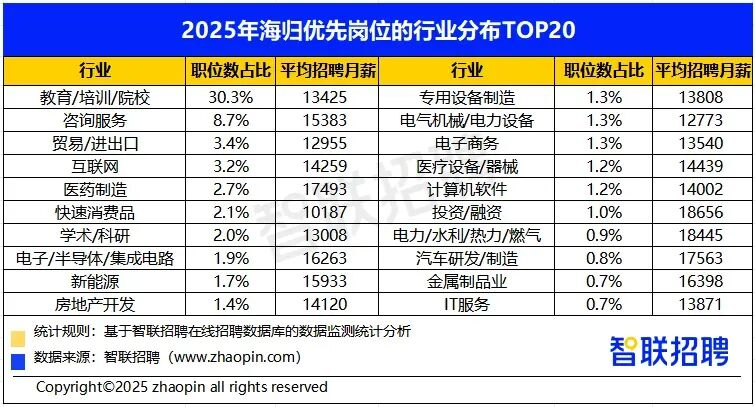 从行业需求来看,教培、咨询、贸易等传统领域依然是吸纳海归的主力,三者合计占比达42.4%,但真正的增长点,在于新质生产力相关领域。