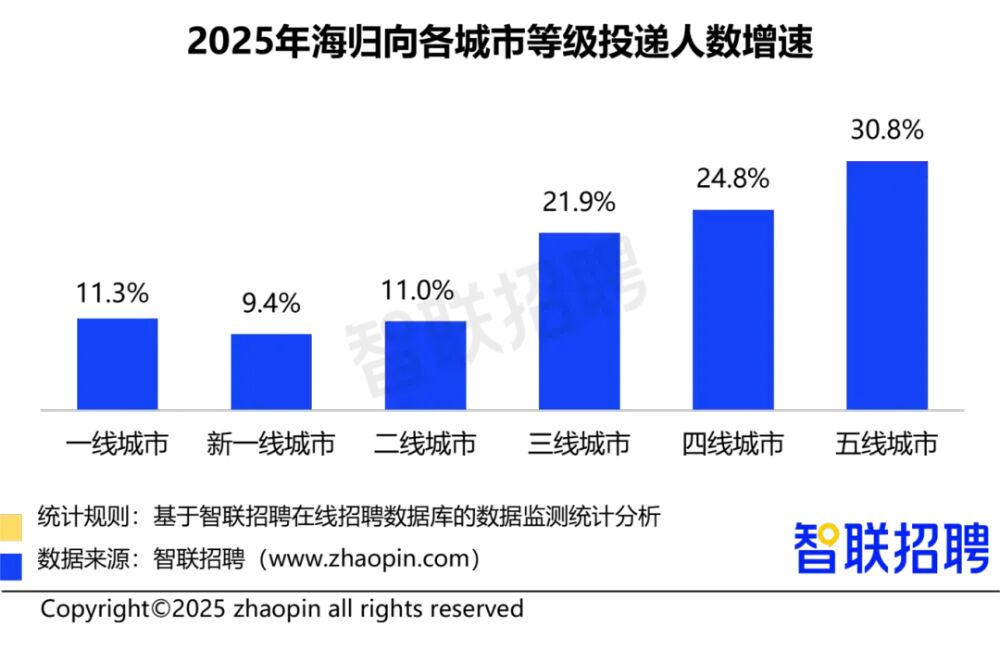 但更值得关注的是,海归求职向三四五线城市下沉的趋势非常明显: