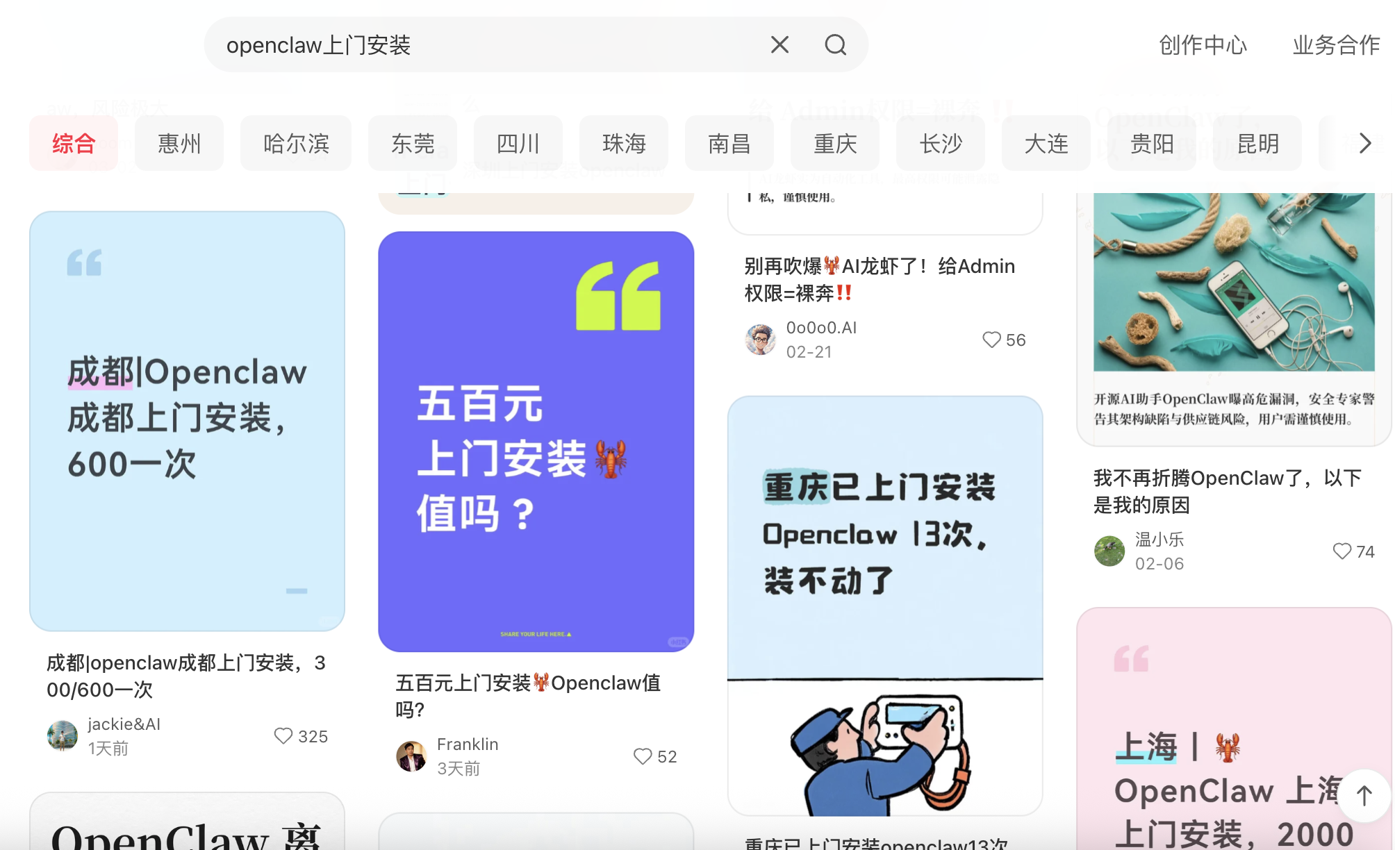 最最最离谱的是,甚至还有打着“全国可飞”“上门部署”标签的帖子——不是您这龙虾它什么颜色的?
