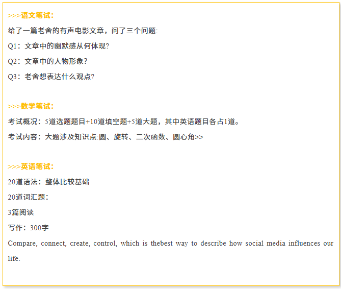 上海世外首场考试在科目设置和题型上均有明显变化:语文一改往年文学常识+文言文理解的固定模式,只保留了一篇阅读。这篇阅读实际上源自2018年高考语文全国卷,可见世外对学生语文能力的要求始终维持在较高水平。