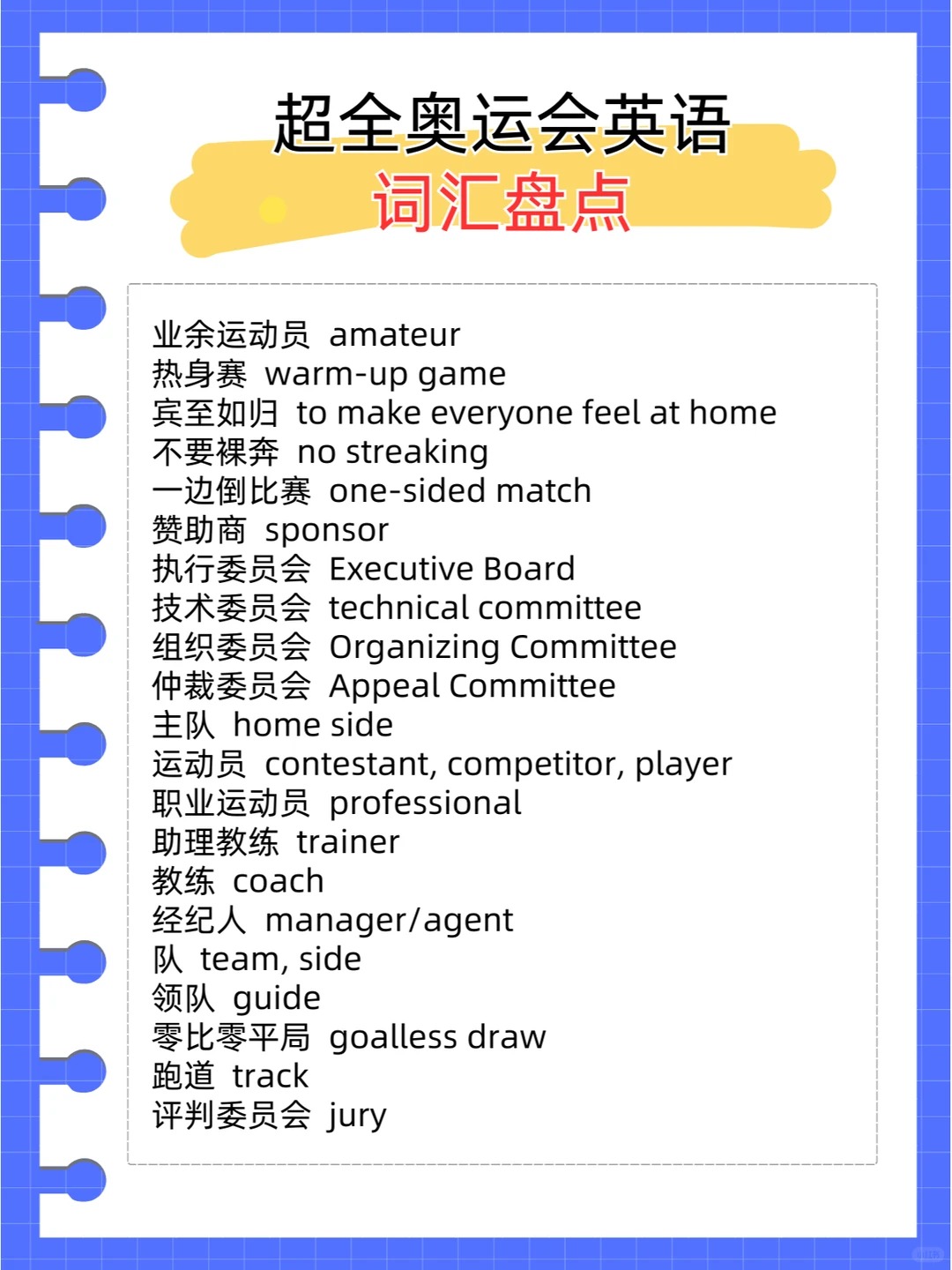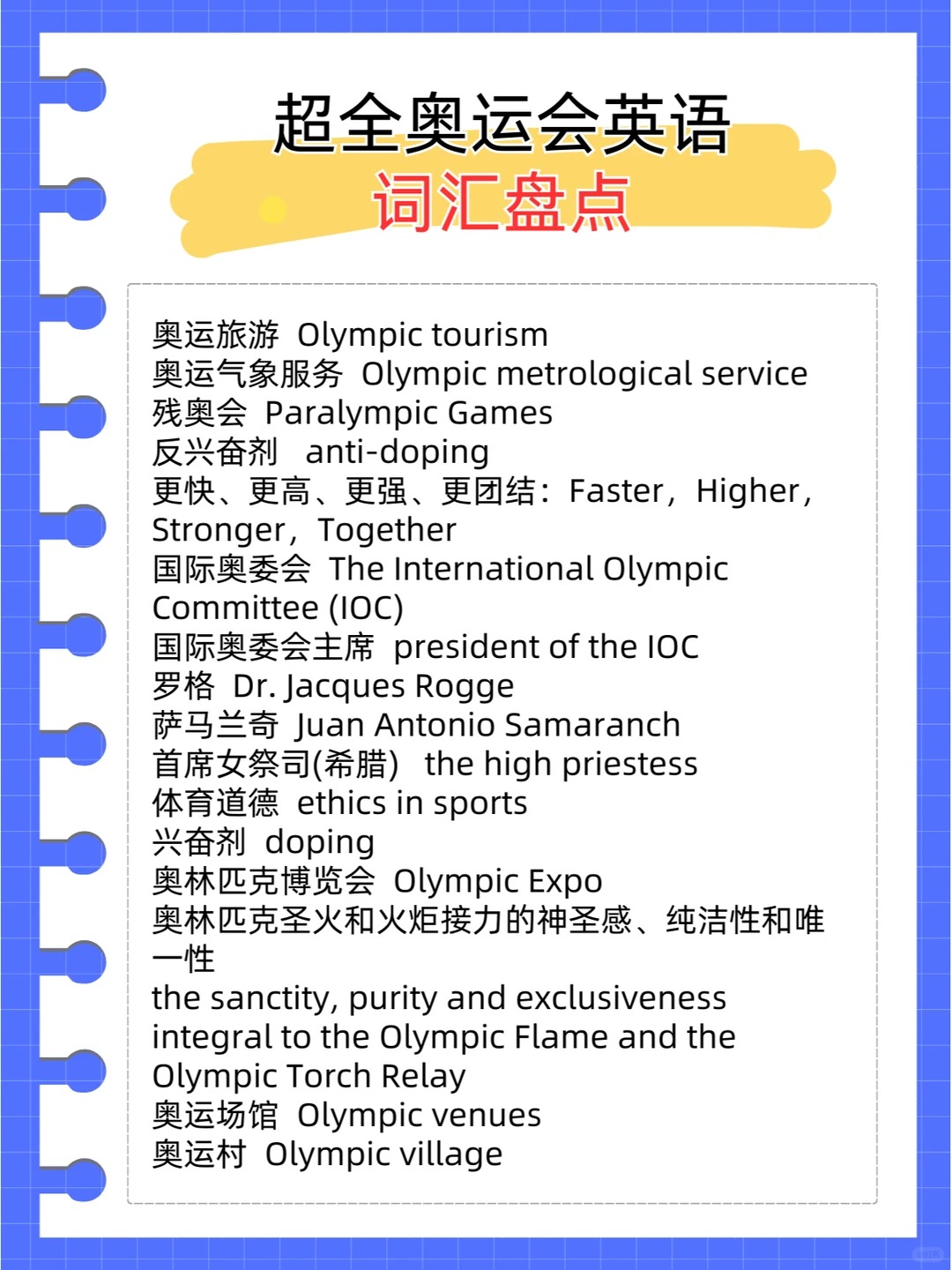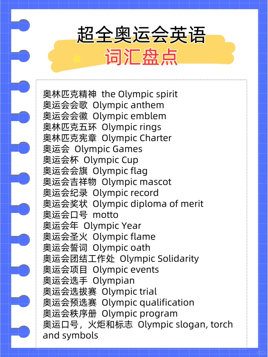 今天小编不讲赛事, 来给宝子们梳理一下奥运会相关的英语词汇, 相信对大家的出国留学语言考试有一定帮助。