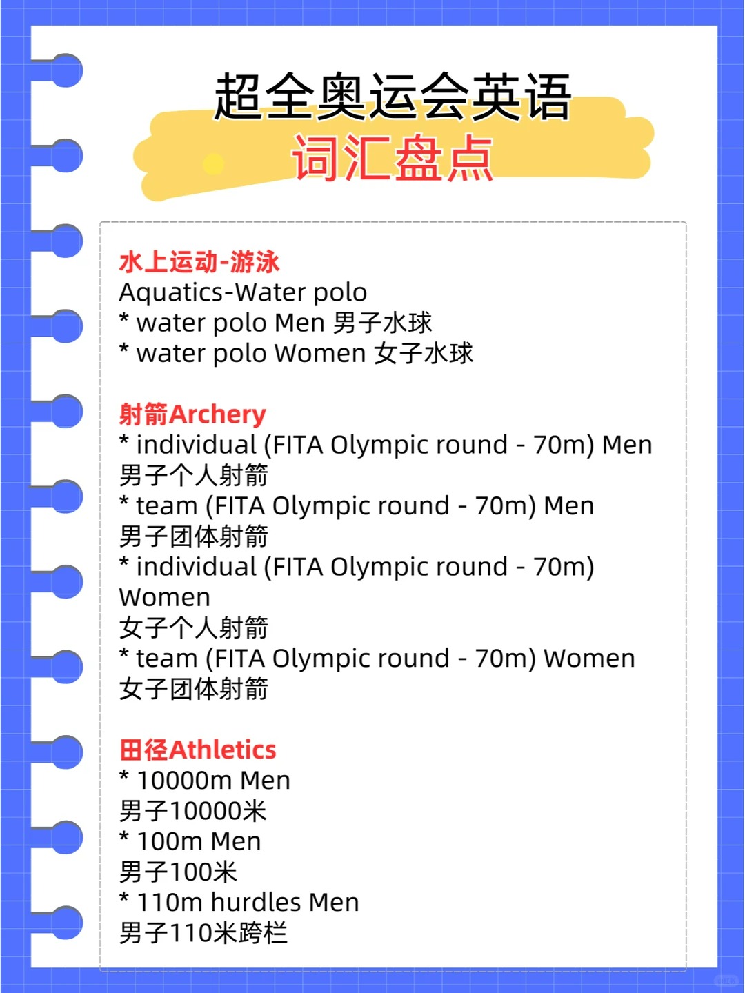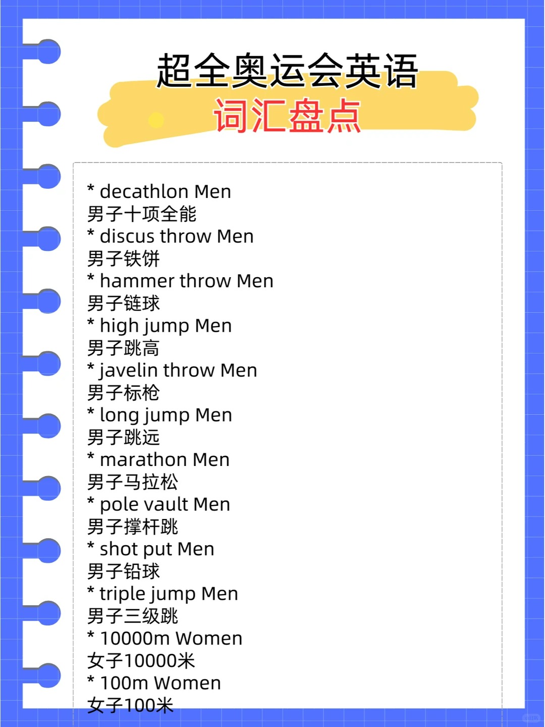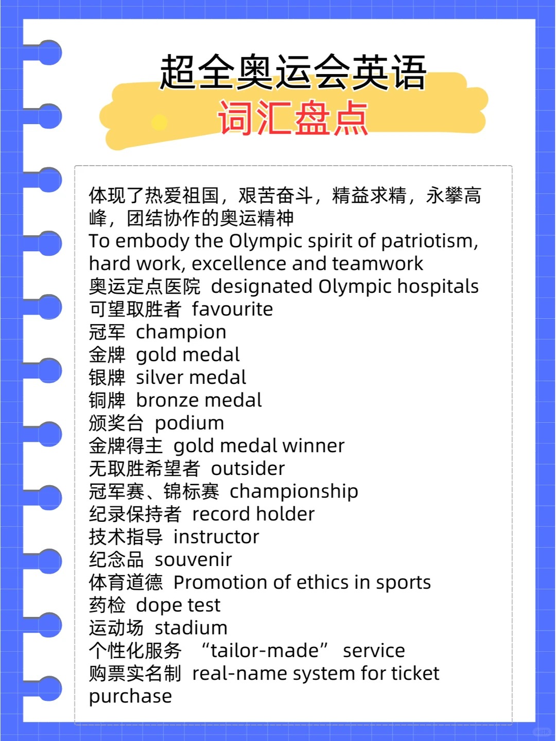 今天小编不讲赛事, 来给宝子们梳理一下奥运会相关的英语词汇, 相信对大家的出国留学语言考试有一定帮助。