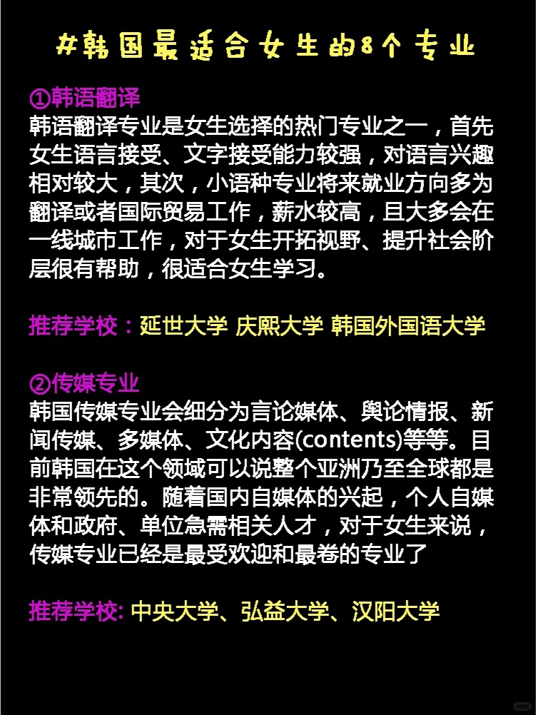 传媒专业 推荐学校: 中央大学、弘益大学、汉阳大学