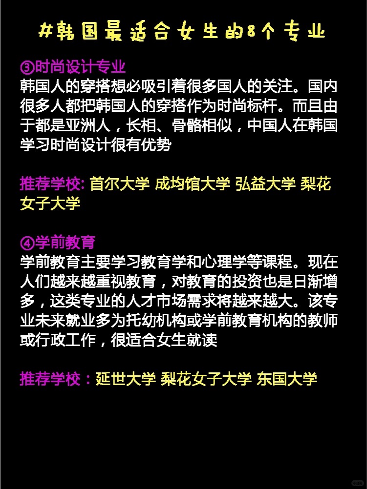 时尚设计专业 推荐学校: 首尔大学 成均馆大学 弘益大学 梨花女子大学