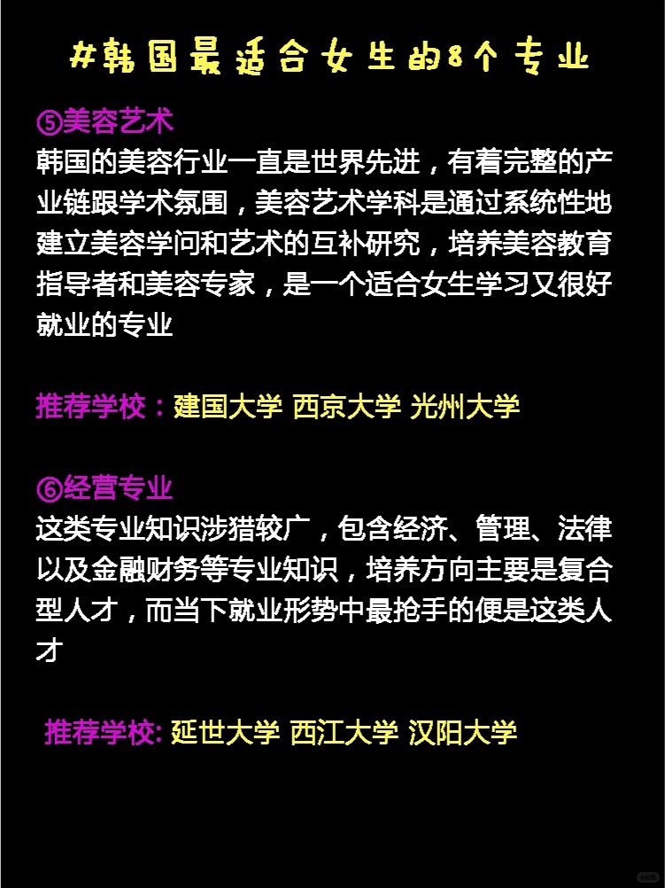 除此之外,韩国就读专业也非常好,其知名院校也比较多 去韩国留学到底该选择什么专业,这是经久不衰的问题