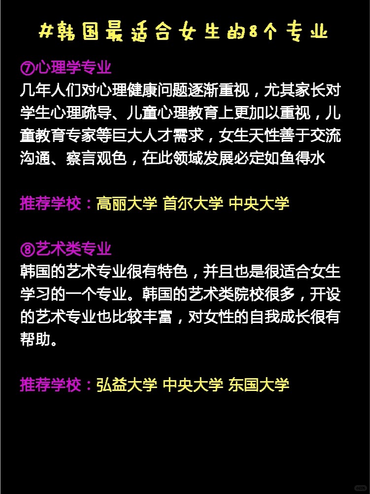 心理学专业 推荐学校:高丽大学 首尔大学 中央大学