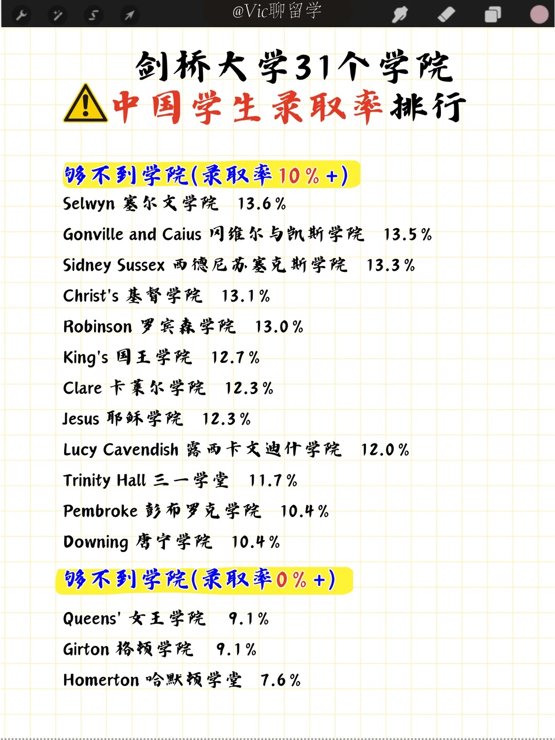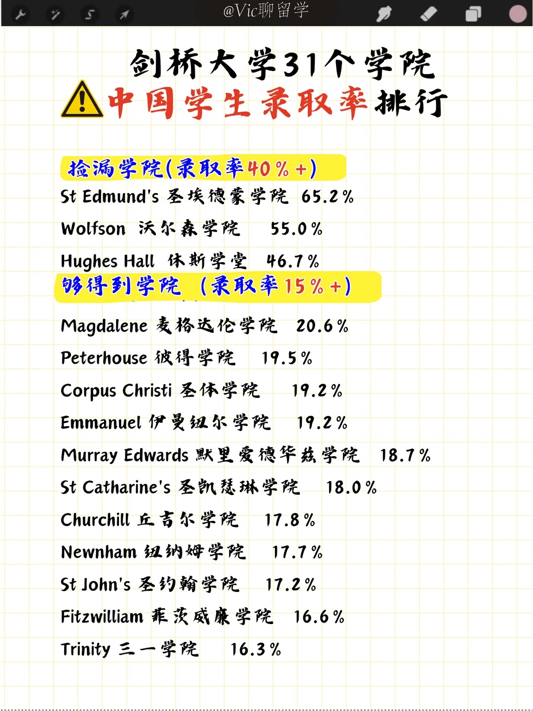 为了更详细的让大家了解这几所学院,今天根据剑桥官网发布的录取数据,统计了近两年中国留学生的平均录取数据,敲重点: