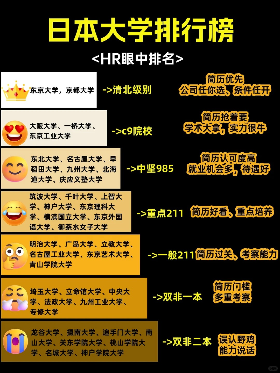 第2档日本留学院校↔️对标国内C9院校:大阪大学、一桥大学、东京工业大学 ,简历抢着要学术大拿,实力很牛。